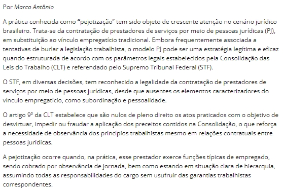 Pejotização: quando o modelo PJ configura vínculo trabalhista irregular Pedro Ribeiro Notícias, Opinião