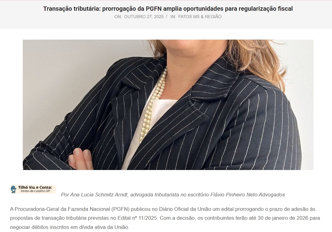 Transação tributária: prorrogação da PGFN amplia oportunidades para regularização fiscal - Castilho+